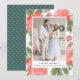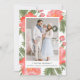 Envie cartões de natal aos amigos e à família no estilo chique com nossos cartões com fotos elegantes. Sua vertical ou foto orientada retrato são moldados no branco e cercados por flores vermelhas da peônia da aguarela pintado à mão e pela folha verde. Personalize com seu cumprimento feito sob encomenda (mostrado com "Natal o mais alegre") e nomes de família abaixo de sua foto.