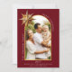Crie um cartão com fotos de Natal personalizado com uma estonteante estrela de ouro de Belém design. Este cartão vermelho, verde escuro e dourado personalizável irá adicionar um toque elegante às suas saudações festivas. Personalize-o com sua própria foto e mensagem para uma saudação única e memorável. Perfeito por espalhar alegria de férias para amigos e familiares.