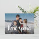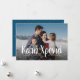Com as palavras "Feliz ano novo" escritas em grego, este cartão com fotos é perfeito para enviar para Yiayia e Papou e toda a sua família e amigos gregos. O texto branco fica no fundo de uma foto horizontal e está rodeado de pontos. O backer é azul com um padrão de ponto festivo e divertido.A cor pode ser alterada clicando em "personalizar".
