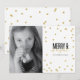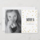 Sofisticado + Elegante. Este cartão festivo do feriado é toda sobre a comemoração da estação e é projetado exclusivamente para Zazzle. Os pontos Dourados polvilham suas fotos favoritas. Adicione um selo do feriado dos envolvimento de nossa coleção extensiva do porte postal para combinar perfeitamente com seu cumprimento. Os envelopes dos envolvimento, os forros e os cercos de Pocketfold® estão disponíveis como um serviço adicional (no direito) com zazzle.com