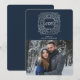Envie seus família e amigos um cartão com fotos moderno bonito do feriado da alegria. O cartão com fotos elegante caracteriza um fundo contínuo do marinho, a palavra "alegria" dentro de um quadro do vintage da folha de prata do falso, e o placeholder para o texto e uma foto.