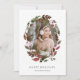 Os cartões de natal botânicos elegantes apresentam sua foto favorita cercada por uma coroa oval rústica de folhagem verde e marrom e flores cortadas. Personalize com sua saudação personalizada e nomes por baixo; mostrados com "Feliz Natal".