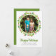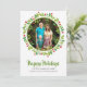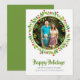 Na moda, carta de Natal personalizada e branca, com gráficos de uma coroa verde com as frutas vermelhas e o dentro de slot de foto personalizado. Personalize o texto e a imagem personalizados para atender às suas necessidades de feriado.