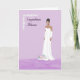 Os parabéns debutantes são feitos numa lavanda clara, com uma jovem negra de vestido branco longo, e um spray de corações brancos no canto superior esquerdo. Obrigados à Hungryjpeg para alguns dos elementos do design.
