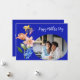 Este cartão do Dia das Mães com buquê floral de foto azul é a maneira perfeita de dizer à mamãe o quanto você a ama. Adicione sua própria foto e texto para mostrar que você se importa. Envie este cartão de felicitações com foto floral para sua mãe muito especial em um dia das mães muito especial. As flores coloridas oferecem um toque de cor contra o adorável fundo azul. Este cartão elegante vem com uma mensagem pré-configurada no verso que você pode manter ou alterar.