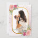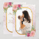 Cartão de saudação floral em aquarela com uma foto única da sua mãe! Corações cintilantes, dourado real e rosa. "Feliz Dia das Mães" é escrito em estilo caligráfico, quase como se fosse escrito com uma caneta no papel.
