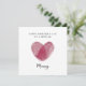 Celebre o amor entre uma mãe e o filho com este elegante cartão do Dia das Mães com impressão digital em forma de coração. Com um belo símbolo de coração vermelho feito com impressão digital, representando um vínculo único e indestrutível, este cartão de cumprimentos minimalista e moderno é perfeito para dizer à sua mamãe o quanto ela é especial. Ideal de filha ou filho, este design sincero torna um objeto de recordação significativo que ela irá guardar para sempre. Um cartão atencioso e elegante para tornar o Dia das Mães ainda mais especial.