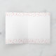 Doce cartão do Dia dos Namorados com nossos personagens desenhados à mão na capa e um romântico desenho de pequenos corações no interior, na parte superior e inferior dos lados esquerdo e direito. Para completar o desenho, a parte traseira do cartão tem um precioso desenho de corações.
