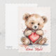Cartão do Dia dos Namorados com Urso, segurando um coração vermelho e texto personalizado. Personalizado com nome e texto.