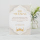 Celebre o Eid ul Adha com este cartão de felicitações elegante com acentos geométricos dourados, uma silhueta de mesquita e uma dua sincera. Projetado em clássico branco e dourado, é perfeito para compartilhar bênçãos e votos com familiares e amigos. Um cartão islâmico atemporal para uma celebração de feriado significativa. Totalmente personalizável com seu nome ou mensagem.