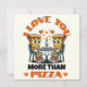 Compartilhe uma dose de humor e amor neste Dia dos Namorados com nosso cartão do Dia dos Namorados "Eu amo você mais do que pizza"! Com uma hilária ilustração de desenho animado de duas pessoas-pizza desfrutando de um jantar à luz de velas (com mais pizza!), este cartão é perfeito para os amantes de pizza com senso de humor. O design fofo e engraçado combina amor e risadas com um toque peculiar temático de pizza. A mensagem interna diz: “Você é o único que pode roubar uma fatia do meu coração! (Mas não toque na minha pizza.)” Seja para seu parceiro, melhor amigo ou um entusiasta de pizza, este cartão é uma maneira deliciosa de dizer “Eu amo você!”. Edite o texto da página do produto ou altere o estilo ou cor da fonte usando a ferramenta de design.