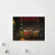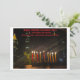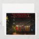 A imagem retrata um cartão Chanucá com uma paisagem noturna com uma menorah iluminada com brilho no primeiro plano. A menorah tem nove velas, todas acesas, simbolizando as oito noites de Chanucá. O cartão inclui a mensagem "Happy, Healthy Hanukkah 2024" e você pode personalizar o texto!