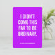 Sai com cada palavra. Esta carta rosa poderosa apresenta a mensagem ousada: "Eu não vim tão longe para ser normal." — um lembrete perfeito para perseguir sonhos sem pedir desculpas. Quer estejamos a aplausos num formando, a celebrar um marco, ou a surpreender um amigo que está a nivelar-se na vida, este cartão personalizado constitui um presente motivacional inesquecível. Personalize-o dentro com a sua própria mensagem para um toque verdadeiramente significativo. Perfeito para: Graduação | Etapas da carreira | Motivação do chefe | Presentes de amor próprio | Incentivo a amigos ou filhas