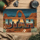 Vintage Style National Parks Postcard sob Night Sky Traga um toque de charme de vintagem para seu espaço com este cartão-postal impressionante mostrando a beleza dos parques nacionais de Utah no céu noturno. Parques Nacionais no céu noturno. Apresentando marcos icônicos como Arches, Monument Valley, Bryce Canyon e Zion, esta peça pitoresca é uma peça obrigatória para amantes da natureza e entusiastas da viagem. Adicione um toque de nostalgia e desejo de vaguear à sua coleção com este achado exclusivo.