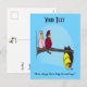 Um cartão com um desenho animado engraçado sobre um pássaro apaixonado por um morcego. O fundo, a imagem e o texto podem ser personalizados. Arte original de DBcartoons.