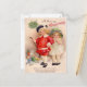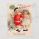 Este é um cartão postal de natais vintages encantador de uma garotinha e de um menino. O menino louro está vestido com uma roupa de Natal vermelha enquanto a menina tímida está com um vestido branco e um chapéu verde. Bonecas e outros presentes de Natal estão no chão ao lado deles. O cartão-postal diz: "Um Feliz Natal" e no final diz: "Feliz Natal para você, dias Felizes e bênçãos verdadeiros, alegrias de Ouro e fortunas brilhantes, e um coração que é sempre leve". Um cartão postal de natais vintages adoráveis para enviar aos seus entes queridos!