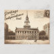 Traga-se para o passado com nosso cartão postal estilo vintage com o Independence Hall em Filadélfia, Pensilvânia. Esta ilustração em tons de sépia captura a beleza eterno desse marco histórico, mostrando sua intrincada arquitetura e significância na história americana. As arestas angustiadas e a textura vestida evocam nostalgia, enquanto a mensagem 'Saudações da Independência Hall', em caracteres clássicos e cursivos, acrescenta ao seu encanto antigo. Um dom perfeito para os entusiastas da história e os viajantes