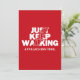 Este simples, mas belo cartão vermelho de saudação de Trilha Appalachian apresenta o slogan motivacional "Simplesmente Continue Andando" na frente. O cartão é vazio, por isso pode acrescentar-se uma mensagem refletida para alguém que planeja caminhar do Maine para a Geórgia ou incluir uma nota de agradecimento para aqueles que o apoiaram na sua caminhada.