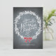 Este cartão rústico do feriado do quadro é perfeito para um nostálgico contudo cartões de natal modernos e é projetado exclusivamente para Zazzle. O acento vermelho impresso da fita decora a grinalda do feriado com tipografia branca do roteiro. Adicione um selo do feriado dos envolvimento de nossa coleção extensiva do porte postal para combinar perfeitamente com seu cumprimento. Os envelopes dos envolvimento, os forros e os cercos de Pocketfold® estão disponíveis como um serviço adicional (no direito) com Zazzle.com