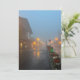 Uma encantadora cena de rua com luzes brilhantes e compras decoradas, suavemente iluminadas através da névoa noturna, criando uma atmosfera quente e convidativa.