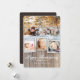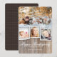 A tipografia elegante e russa, de madeiras curtidas, é a palco de um país encantador de saudações de outono para familiares e amigos. Com espaço para uma colagem de fotos múltiplas de sua família, este design fotografa três fotos menores e uma foto grande com uma borda de grãos de madeira simulados no fundo e coordena o padrão de pontos no verso.