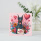 Cartão do dia dos namorados com um Doberman com flores e um balão em forma de coração.