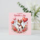 Cartão do dia dos namorados com um Fox Terrier com flores e balões em forma de coração.