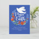 Um bonito cartão de Natal, com uma pomba numa coroa floral, com as palavras paz na Terra. O cartão de Natal é desenhado em azul real, branco e vermelho. Personalize com seu nome, o ano, uma mensagem curta e sua foto de família na parte de trás do cartão. Projetado para você pelo Blackberry Boulevard.