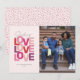 Celebre o amor com esta doce carta de Dia de os namorados! Com um tema de Namorados de "amor pelo amor" rosa, roxo e vermelho brincalhão, na frente, com uma foto de solteiro, a parte traseira apresenta corações coordenadores e borrifações em um fundo rosa e pincelado. Faz uma saudação perfeita ao Dia de os namorados para enviar amor e alegria no inverno. Coordena-se com a coleção de "corações e borrifos" de Lea Delaveris Design.