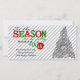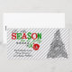 Cinza e fundo de faixa diagonal branca com árvore de Natal e texto vermelho, preto e verde que diz "Tis the Season to be jolly Fa La La La La La!" Você pode personalizar facilmente este cartão antes de fazer pedidos com seu próprio texto!