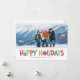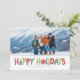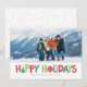 Envie desejos de feliz e feriados brilhantes com este cartão com fotos colorido com ilustrações divertidas e divertidas como parte da palavra "feriados felizes"