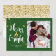 Um belo cartão com fotos com pontos minúsculos fazer um padrão de aparência reluzente, e "Feliz e Brilho" em uma bela fonte desenhada à mão, a amante enfeitiçada em uma textura dourada. Basta adicionar sua própria foto e personalizar o nome e o ano na frente do cartão! Há um quadro verde ao redor da foto, para que qualquer tamanho que você colocar nela seja enquadrado. A parte de trás do cartão está cheia de belos pontos de folha de ouro.