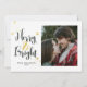 Um belo cartão com fotos com pontos minúsculos em um adorável padrão de folha de ouro, e "Feliz e Brilho" em uma bela fonte desenhada à mão, a amante enfeitiçada em uma textura dourada. Basta adicionar sua própria foto e personalizar o nome e o ano na frente do cartão! Há um quadro branco ao redor da foto, para que qualquer tamanho que você colocar nela seja enquadrado. A parte de trás do cartão está cheia de belos pontos de folha de ouro.