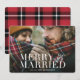 Feliz e cartão com fotos vermelha casada