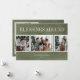 O Cartão com fotos de Férias com "Bênçãos Incêntricas" no Fundo Verde Comemora a temporada com nosso Cartão com fotos de Férias com um design de "Bênçãos Incêntricas", perfeito para compartilhar a alegria e gratidão dos feriados. A frente mostra três fotos carinhosas, cada uma enquadrada com bordas brancas limpas que se pop contra um rico fundo verde de textura linear. O texto elegante e ousado que lê "Bênçãos Aproximadas" transmite uma mensagem sincera de abundância e gratidão, enquanto o layout mantém suas memórias familiares no centro da design. A parte de trás do cartão oferece espaço adicional para uma quarta foto e uma mensagem personalizada mais longa, fazer de fácil compartilhamento de atualizações, desejos ou reflexões no ano. Seja destacando marcos familiares, férias ou momentos especiais, este cartão fornece uma bela maneira de se conectar com entes queridos perto e longe. Este cartão é ideal para famílias, casais ou indivíduos que procuram um cartões de natal eterno com um toque de elegância moderna. O fundo da linha verde, aliado às bordas brancas de fotos, cria uma estética na moda, porém quente, que complementa as seleções formais e ocasionais de fotos. Compartilhe suas bênçãos e espalhe alegria com esta carta cuidadosamente projetada que captura o espírito da estação.