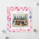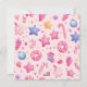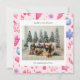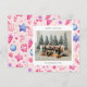 Cartão de férias com ilustrações de doces de Natal fofos em uma paleta de cores pastéis, com uma foto de família combinada com uma saudação de férias e seu nome e ano em uma fonte sem serifa.