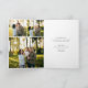 Cartões de natal dobradas elegantes apresentam "pode amar e acender seu coração em Chanucá" em tipografia escrita à mão sobre uma fita azul de aquarela, acentuada por folhas verdes e bagas brancas. Personalize com seu nome de família e o ano em branco em um fundo azul marinho, e personalize o dentro com três fotos e uma mensagem pré-impressa personalizada.