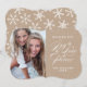 CARTÃO COM FOTOS ELEGANTE RUSTIC HOLIDAY com fundo de papel kraft (efeito fotográfico impresso). As palavras "Desejando-lhe alegria, amor e paz". Você vai adorar este design de cartão de cartões de natal bonito com uma letra branca e flocos de neve delicados na frente e atrás da carta. Design pelo designer Elke Clarke © Outros estilos e cores disponíveis em www.zazzle.com/monogramgallery.