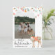 Cartão de Feriado Tropical com ilustração de aquarela com uma rena de ranhura, personalizada com 1 foto personalizada. Edite seus desejos personalizados na parte traseira do cartão.