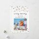 O confete Dourado Stars o cartão com fotos do feriado. © de Elke Clarke outros estilos e cores disponíveis em nossa loja em www.zazzle.com/epclarke. Cartão com fotos contemporâneo, moderno, simples, preto e branco do feriado com teste padrão de estrelas dos confetes da folha de ouro (efeito impresso da foto), e as palavras "muito alegres" em uma pia batismal do roteiro da escrita do desenhista.