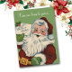 Aqui está uma maravilhosa e antiga imagem de Papai Noel segurando uma placa que diz "Desejos de Natal". A imagem é colocada sobre um fundo verde, e o topo da carta diz "Da nossa casa para a sua". Todo o texto é totalmente personalizável, então você pode deixar o texto como está ou mudá-lo para qualquer coisa que você quiser. É divertido celebrar o Natal à moda antiga!
