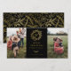 Ouro Elegante monograma da coroa de inverno, feriado 2 cartão com fotos em preto clássico. A placa tem suporte de padrão correspondente e várias linhas de modelo para a sua saudação personalizada.