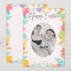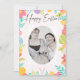 PÁSCOA CARD, uma bela e simples fotografia feliz. Crie seu próprio cartão com fotos de férias. Cartão de saudação de sobreposição de pastel engraçado rosa. Design de ovo moderno.