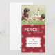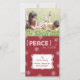 Características deste design originais um fundo vermelho com flocos de neve brancos. O texto original lê: "Paz na terra". Transfira arquivos pela rede sua própria foto e personalize o texto na caixa de texto festiva do flourish para terminar o olhar deste cartão de Natal na moda da foto. Nós temos este design disponível em uma variedade de cores!
