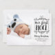 O primeiro Natal do bebê é destacado neste design delicioso da tipografia moderna, fresca e de detalhes desenhados mão originais da ilustração. Caracterizando uma foto sem redução de sua adição pequena doce com espaço amplo na parte traseira para que você personalize e adicionem uma mensagem adicional ou mais fotos se você deseja.