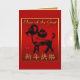 Preto sortudo Vai para uma estrutura dourada com tapeçaria de seda vermelha (efeito digital) como fundo e inscrição em ouro ANO DO GOAT e saudação em chinês "Feliz ano novo" + fundo vermelho. Design no cartão de saudação. Você pode adicionar e alterar facilmente a cor do plano de fundo (dentro da placa) clicando no botão personalizar. Cartão postal, convite, produtos de artesanato, produtos domésticos, vestuário e muito mais... Perfeito para o Ano Novo Chinês da Cabra.— A Cabra (Chinês: 羊; pinyina: yáng) é o oitavo sinal do ciclo de 12 anos de animais que aparecem no zodíaco chinês relacionado com o calendário chinês. O sinal também é conhecido como sinal Ram ou Sheep, uma vez que a palavra chinesa yáng é mais precisamente traduzida como Caprinae, uma subfamília taxonômica que inclui ovinos e caprinos. (...) Pode dizer-se que o nascer Pessoas dentro destes intervalos de datas foi nascer no "Ano da Cabra", ostentando simultaneamente o seguinte sinal elementar: