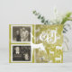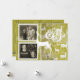 Belos cartões com fotos de férias com renas brancas em um fundo verde com flocos de neve silenciados, texto que lê Joy, e áreas que você pode facilmente personalizar com duas fotos, seus nomes e o ano atual.