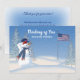 Snowman, Patriótico de Natal, a avaliar a bandeira americana - a coleção homenageia os nossos militares e as nossas mulheres durante a época de férias. Cartão impresso em ambos os lados