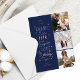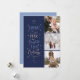 Anima-se ao Ano Novo com este cartão de feriado multifoto dinâmico e divertido. O texto do Cartão diz "Saúde a Outro Ano de Raios, Amor e Magia de Férias" Personalize a Data, o Nome da Família e o parágrafo da sala no verso para que um parágrafo de texto compartilhe sobre o seu ano. 3 Layout de fotos na frente e uma foto de quadro cardíaco na parte traseira. Marinho, azuis leves e design creme.