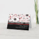 O cartão do Feliz Natal para a sobrinha e a sua família em redemoinhos à moda do preto, os brancos e do vermelho, com teste padrão encantador do floco de neve, deseja a poço da família da sua sobrinha esta época natalícia com este cartão elegante.